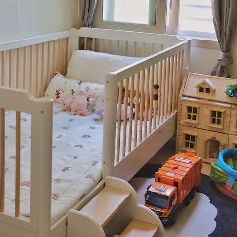 입구만 빼고 가드되어 있기 때문에 뒤집기를 시작한 아이에게 꼭! 필요한 침대입니다.아기가 사용하기 때문에 친구를 살 때 고민을 많이 하는데, 레이디 가구의 렙데이 침대는 자재 등급이 E0이래요.